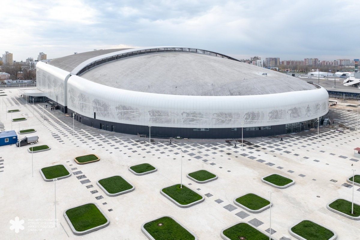 Нижегородцам рассказали, как продвигается строительство Ледового дворца на Стрелке. Свежие фотографии спортивного объекта опубликовал Институт развития городской среды. Сейчас строительство уже приближается к концу, готовность превысила 95%. Специалисты завершают отделку помещений, ведут работы по благоустройство прилегающей территории. Дизайн и графику фасада арены, которые разработал ИРГСНО, со всех ракурсов уже успели оценить нижегородцы. Архитектурная подсветка, как и в целом медиафасад, работают пока в тестовом режиме. Напомним, строительство Ледового дворца началось в 2022 году в рамках концессионного соглашения. Кроме основной арены с трибунами, рассчитанными на 12 тысяч зрителей, там расположатся две тренировочные площадки, универсальный спортивный зал и зал для акробатики. Согласно информации пояснительной записки к проекту областного бюджета на 2026 — 2028 годы, на возведение спортивного объекта в ближайшие три года направят еще 4,6 миллиарда рублей. Ранее мы сообщали о том,