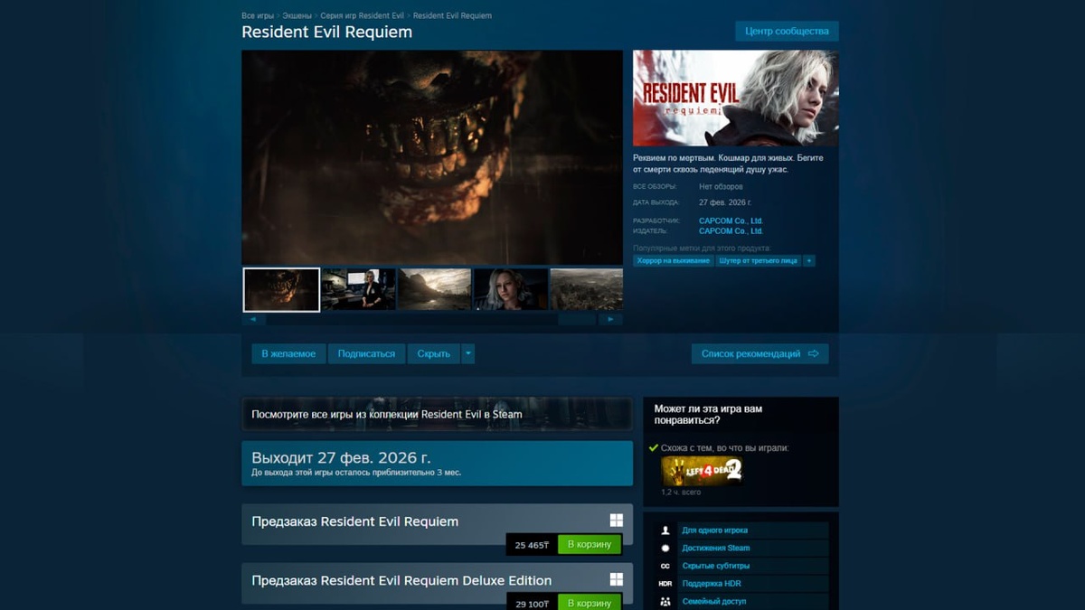 ⚡️На Resident Evil Requiem открылись предзаказы за стандартное издание просят 25465₸ (~3800 рублей