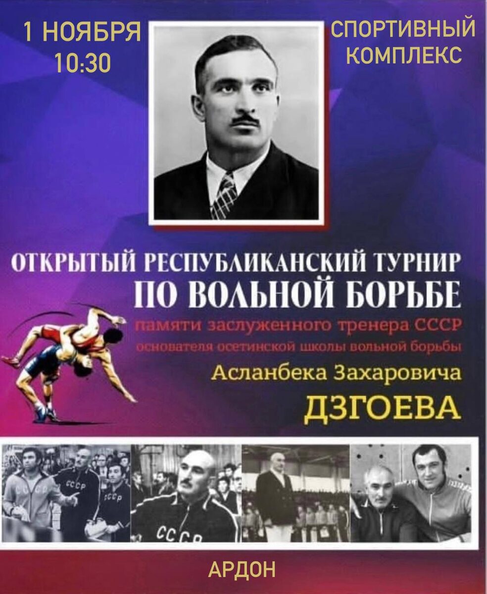 1 ноября на базе спортивного комплекса г.Ардона пройдет Региональный турнир по вольной борьбе среди юношей 2013-2015, 2016-2017 годов рождения памяти основателя осетинской школы борьбы, заслуженного тренера СССР Асланбека Захаровича ДЗГОЕВА. Приглашаем всех любителей вольной борьбы! Начало соревнований в 10:30