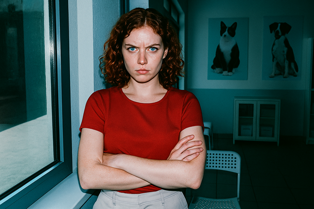 Вика замерла у окна ветеринарной клиники, глядя на Артёма, который о чём-то горячо спорил со своей матерью прямо на парковке.