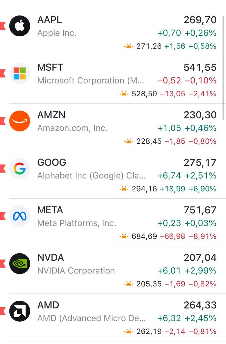 Вчера прикрыл несколько позиций, потому что отчет — это КАЗИНО 🎰 Вот что видим на премаркете: $MSFT -3% $META (запрещена в РФ) -8,2% $GOOG +7,2% Все просто, не нужно придумывать для себя всякие фундаментальные причины. Эксперты дают прогнозы, типа они должны хорошо отчитаться и улететь, никто никому ничего не должен. Забрал прибыль, освободил кэш, ищу новые акции. Можно даже в них же зайти (если будет сетап) — всё-таки это IT-гиганты и простые идеи. Продолжается отчетный период, сегодня еще одни гиганты представят свою отчетность после закрытия рынка: $AAPL $AMZN По ним я тоже закрыл позиции. $AMZN — полностью, $AAPL — оставил пару штук, так как процент хороший. Если цена упадет, оставшуюся часть прикрою максимум в бу. Также поступил и с $GOOG, оставил пару штук. Прибыль нужно фиксировать 💰🥂 #отчет #фондовый_рынок #америка #технический_анализ #отчеты #aapl #msft #goog #meta #amzn #unh