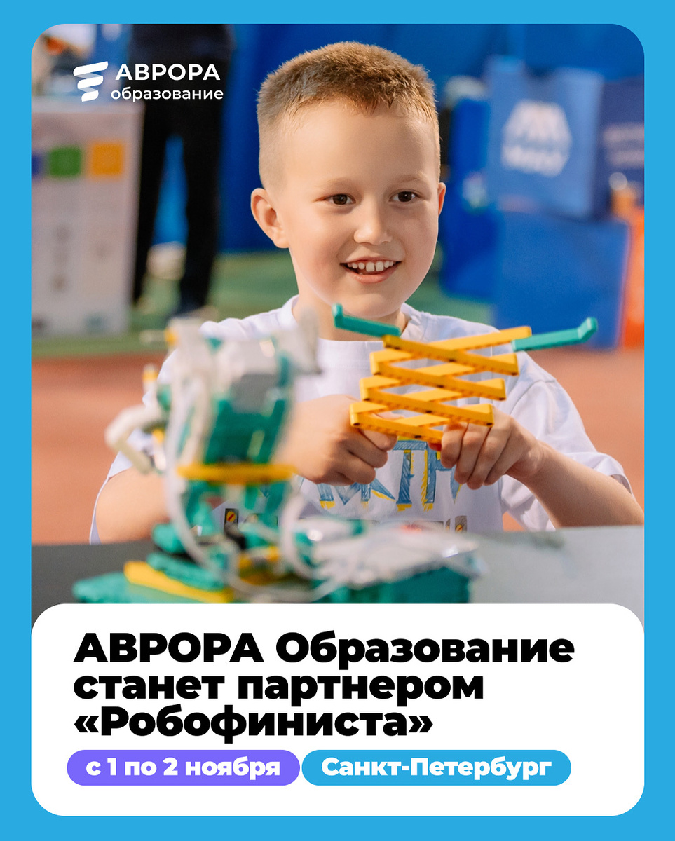 🗓1–2 ноября в Кронштадте пройдет фестиваль «Робофинист». Это событие объединит всех увлеченных робототехникой и погрузит в увлекательный мир робототехники. Фестиваль международный, поэтому у ребят будет шанс поделиться знаниями и пообщаться со сверстниками из-за рубежа. 🤝🏻АВРОРА Образования в этом году выступает в роли спонсора-партнера фестиваля. Мы поддерживаем следующие дисциплины: — Свободная творческая категория: младшая — Свободная творческая категория: средняя — Большое путешествие младшая категория: образовательные конструкторы 🤖Победители и призеры этих дисциплин получат наборы от АВРОРА Образование. С нетерпением ждем встречи с участниками «Робофиниста»!👋🏻