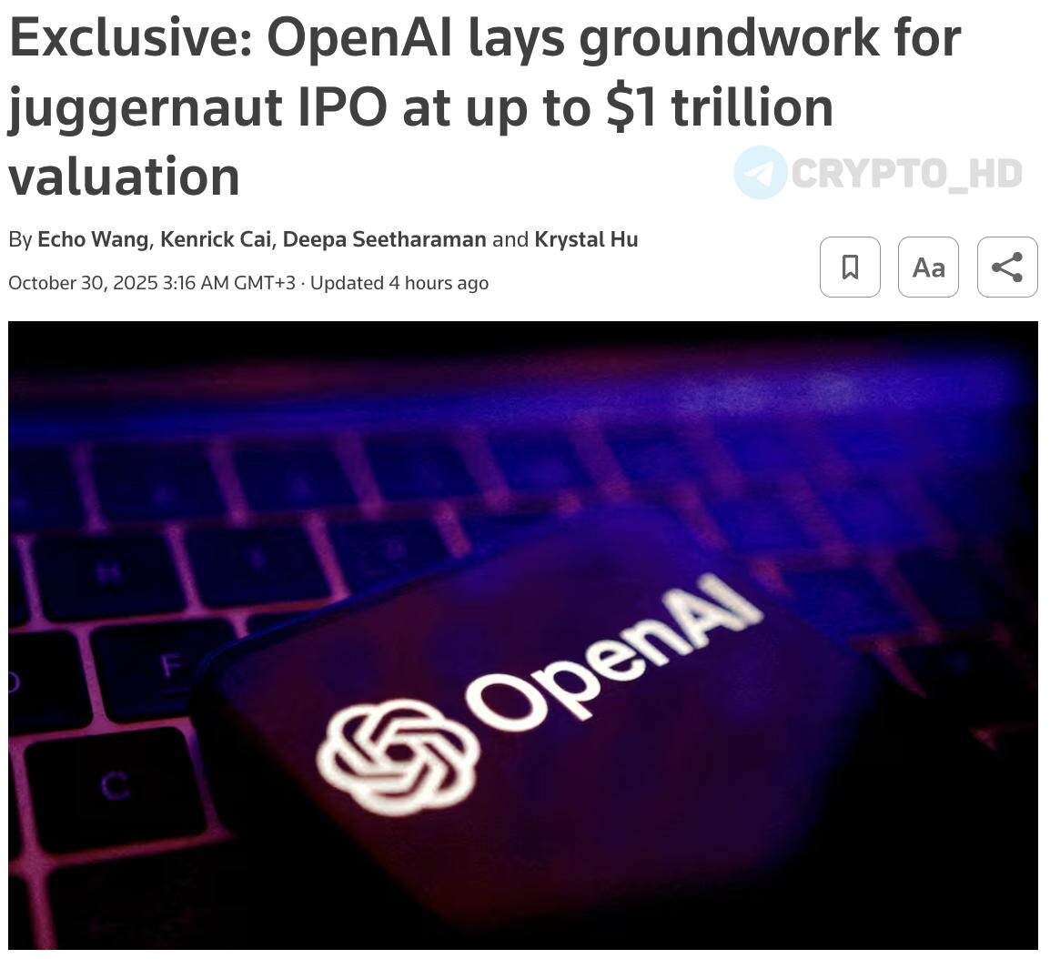 π§ OpenAI Π³ΠΎΡΠΎΠ²ΠΈΡΡΡ ΠΊ IPO Ρ ΠΎΡΠ΅Π½ΠΊΠΎΠΉ Π΄ΠΎ $1,000,000,000,000. Π’Π΅Ρ