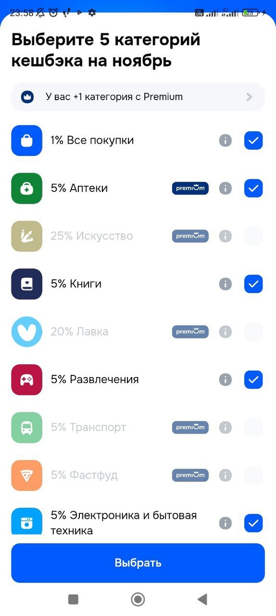 Кроме того, вспомнила, что не выбрала категории кэшбэка на Озон банке, но ничего стоящего они мне не предложили(