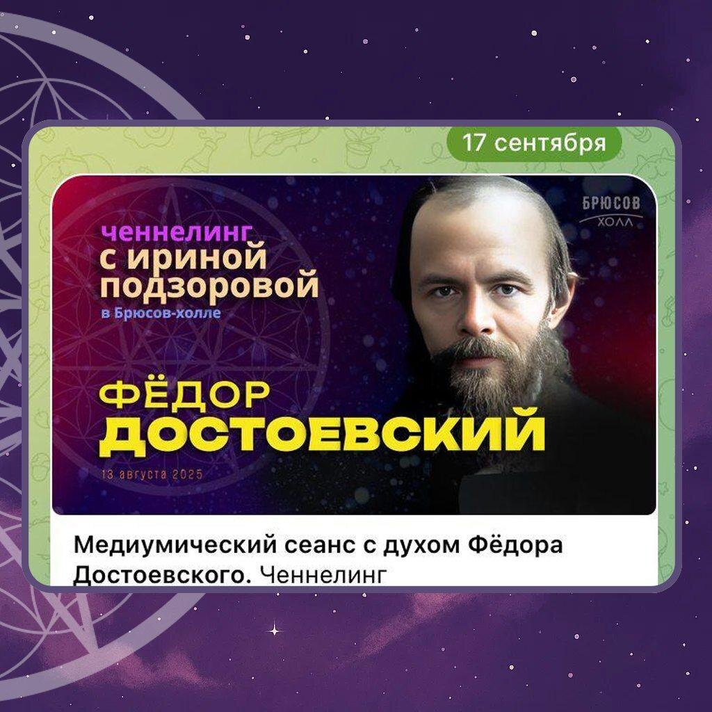 Напоминаем, что запись беседы с Духом Фёдора Достоевского доступна к просмотру в Клубе Ирины Подзоровой