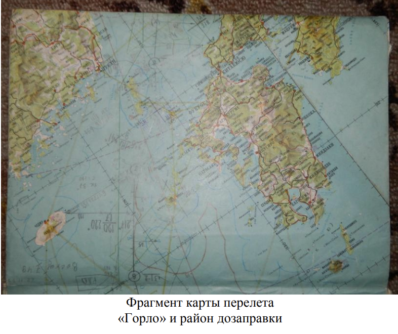 Следом за нами по погоде в пятницу 2 декабря 1983 г. вылетела третья группа: заместитель командира полка подполковник Устинов В.Б., командир 1АЭ подполковник Семенов Л., командир корабля капитан Бикбулатов А.Ф. и 4-ре танкера. Один из них – резервный. Организация перелета осталась прежней. Обеспечивали перелет с Камрани пара Ту-142 подполковник Романов Б.Б. и Ту-95рц майор Векшин В.Ф. На Камрани в готовности для обеспечения встречной дозаправки (при необходимости) находились два Ту-16зщ капитан Наумов С.Н. (68418) и капитан Волков А.Ф. (68419). Перед «горлом» группу перехватили японцы и вели до конца дозаправки, капая на мозги нашим экипажам. Танкер капитана Бикбулатова А.Ф. вел капитан Шарипов С.К. Первая попытка у капитана Бикбулатова А.Ф. была успешной, но шланг не подтягивался. Он сразу пошел к резервному, но тот уже был занят подполковником Устиновым В.Б. (у своего заправщика тот оторвал парашютик). Подполковник Семенов Л. у своего заправщика шланг оторвал, и ему не достался резервный танкер, он возвратился потом вместе с заправщиками на аэродром Хороль. А капитану Бикбулатову А.Ф. пришлось возвращаться к своему танкеру. Он сделал еще три безуспешных попытки и, наконец, на 4-й, в итоге, на зло супостатам, ему удалось сцепиться. Реверса не было, шланг на подтяг пошел... . Он взял 10.500 литров. Пока капитан Бикбулатов А.Ф. мотался между танкерами и бросался на шланг, подполковник Устинов В.Б. с дозаправкой замешкался и отстал. Они пытались определиться с подполковником Устиновым, но потом приняли решение лететь самостоятельно, не ловить друг друга. Капитан Бикбулатов А.Ф. пошел самостоятельно впереди всей группы, а подполковника Устинова В.Б. из Филиппинского моря привели «тяжелые». Его сопровождали на Ту-142 однокашник капитана Бикбулатова А.Ф. командир 2АЭ 169гв.сап подполковник Романов Борис Борисович и мой однокашник на Ту-95рц майор Векшин Василий Федорович. Они дали информацию, что пара подполковника Устинова В.Б. «просквозила» через острова Окинава, но ноты от Японии по поводу нарушения воздушного пространства не поступило.