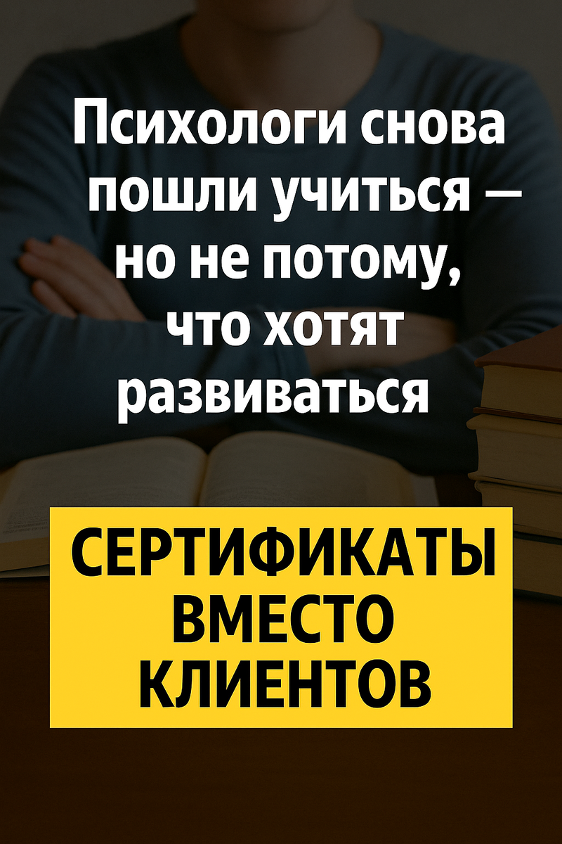 Иногда ловлю себя на мысли: если бы кто-то собирал коллекцию сертификатов, то психологи точно вошли бы в число чемпионов. Каждую неделю на супервизию приходят коллеги с очередными дипломами,вдохновленные, сияющие, но с тем же вопросом: