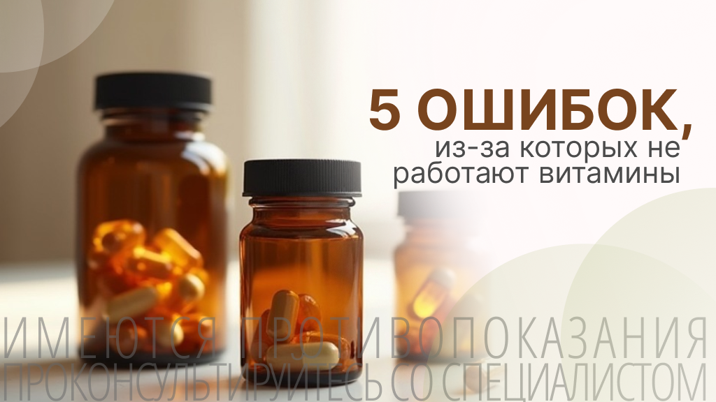 Многие принимают витамины, чтобы поддерживать иммунитет, улучшить состояние кожи, волос и общее самочувствие. Однако при нарушении правил приёма организм может не усваивать большую часть полезных веществ. Разберём основные ошибки, которые делают витаминную поддержку неэффективной. Нельзя принимать витамины на пустой желудок для лучшего усвоения. На самом деле многие из них требуют участия пищеварительных ферментов и жиров. Особенно это касается жирорастворимых витаминов A, D, E и K: без пищи их усвоение значительно снижается. Как правильно: принимайте витамины во время еды или сразу после, желательно вместе с продуктами, содержащими жиры - рыбой, орехами, авокадо, растительными маслами Не все витамины и микроэлементы можно принимать одновременно. Некоторые из них мешают усвоению друг друга. Например: Как правильно: при приёме нескольких добавок разделяйте их по времени. Например, железо - утром, кальций - вечером. Многие начинают курс витаминов “для профилактики”, не зная своего реаль