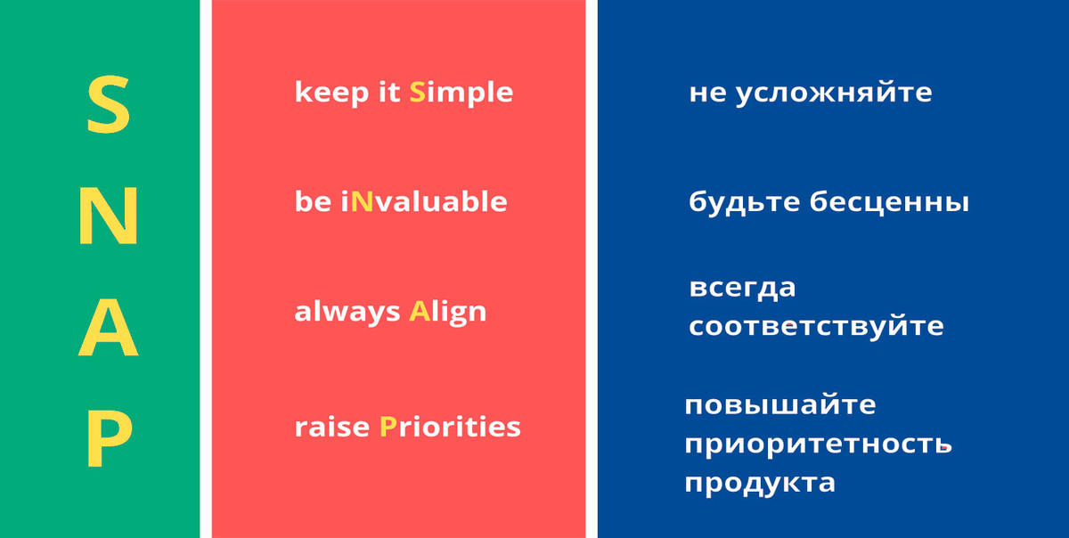 P.S. SNAP-продажи — это методология продаж, цель которой — заставить продавца встать на один уровень с потенциальным клиентом. SNAP — это аббревиатура из следующих слов: будьте проще (Simple), знайте себе цену (iNvaluable), всегда договаривайтесь (Algin) и расставляйте приоритеты (Priorities). Благодаря этим 4 принципам продавцы могут более эффективно работать с потенциальными клиентами, делиться с ними ценной информацией, соединять то, что они продают, с тем, что является важным для клиента, облегчая процесс покупки.
