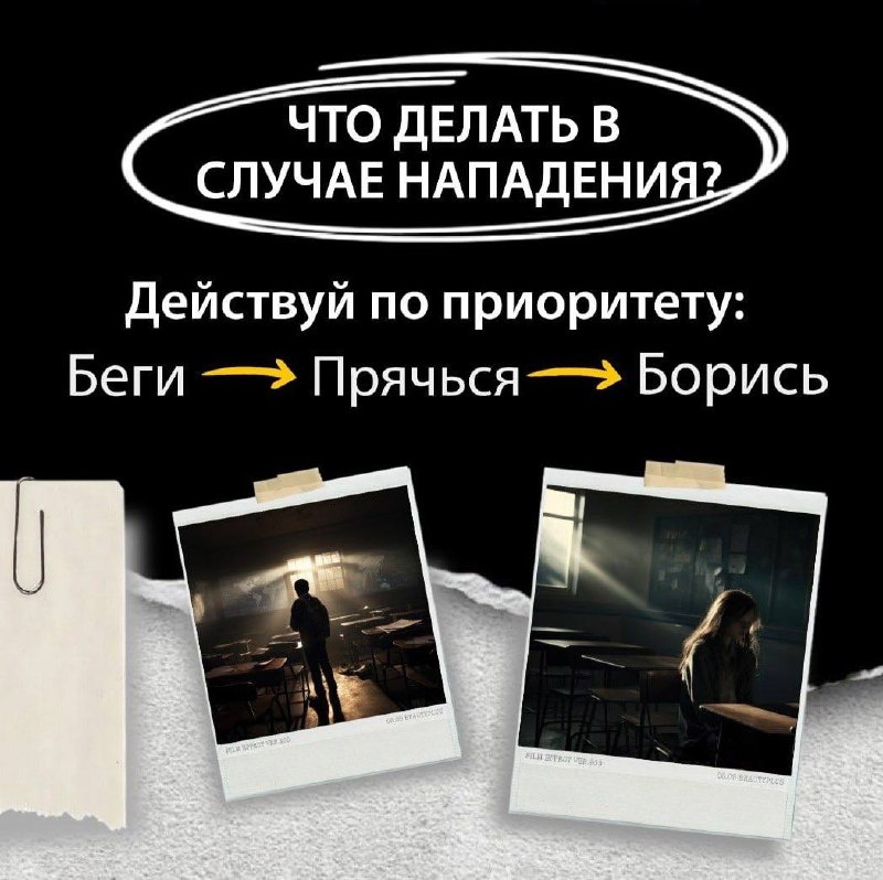 🤔 Как действовать, чтобы выжить? ❗ Важно прямо сейчас: ознакомься с планом эвакуации и найди ближайшие запасные выходы! 👉 Каждая чрезвычайная ситуация имеет свои особенности, единого рецепта действий не существует. 🙏 Основная цель одна — остаться живым и спасти тех, кто рядом! Сохраняй наши карточки и поделись с друзьями и одногруппниками! 👆