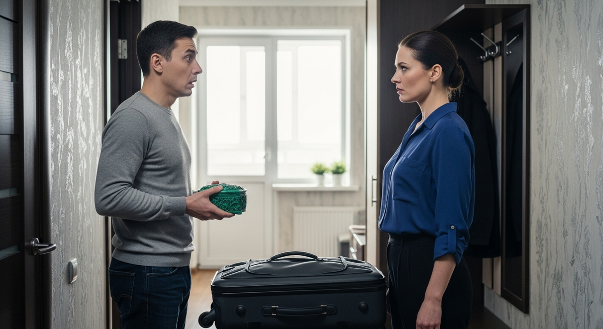 Марина вышла в коридор. Он шагнул к ней, чтобы обнять, но замер, увидев ее лицо. Его взгляд упал на чемодан, стоявший у двери.