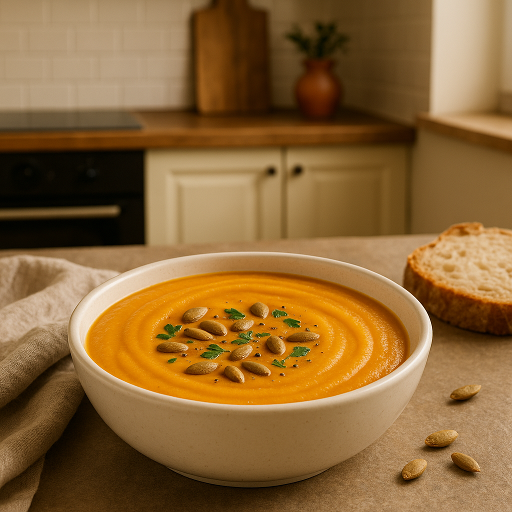 Есть такая категория дней — «день на выживание». Когда Даша прилипла ко мне, как мокрая салфетка. Миша строил пирамиду из йогуртов. А Максим… Максим заявил, что он с сегодняшнего дня ест только «еду, похожую на динозавров». Что это за еда — он сам пока не знает. Я стояла на кухне, смотрела на унылый пейзаж за окном и думала: «Я хочу что-то… настоящее. Не фастфуд. Не овсянку на воде. А что-то, что пахнет домом, теплом и терпением». И тут я вспомнила один рецепт, который как-то увидела интернете — тыквенный суп с перловкой. Молча открыла статью. Прочитала. И пошла варить. Тыква, лук, морковь, перловка — ну что тут может пойти не так? А когда я блендером превратила всё это в оранжевое пюре и добавила кусочки курицы, поняла: вот он, момент уюта. Когда ты устала, но всё-таки стоишь. Когда всё разваливается, но суп получается идеальный. Вечером ели все. Даже Максим, который за динозавров, тихо пробормотал: «Это похоже на еду из пещеры». Значит — вкусно. Теперь это наш семейный суп октября. И