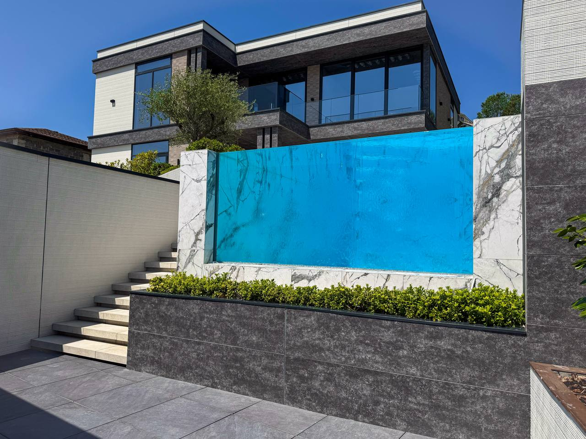 В доме 340 м² на участке 6 соток продумано всё: просторные комнаты, высокие потолки 3,3 м и панорамные окна ALUTECH с видом на горы создают ощущение свободы и света. Каждая деталь — от японского фасада с самоочисткой до умного управления климатом и светом — продумана для вашего комфорта. 📍Локация идеальна: 7 минут до моря, 10 до Имеретинской набережной, 15 до аэропорта. Всё рядом: рестораны, спорт, шопинг, развлечения, но при этом тихо и спокойно. На террасе — шезлонги и барбекю, бассейн 3×8 м с прозрачным японским стеклом переливается в лучах солнца. Клумбы с пальмами и оливами создают уют и атмосферу отпуска каждый день. 11 функциональных зон — террасы, крыша с панорамой, бассейн, зоны отдыха, барбекю, клумбы с пальмами и оливами. Гараж на 2 машины с интеграцией в Smart Home. Премиальные материалы и технологии: 🔵 Японский фасад с фотокерамикой — самоочистка, шумоизоляция, пожаробезопасность. 🔵 Панорамные окна ALUTECH 3,3 м с мультифункциональными стеклами. 🔵 Smart Home: климат, с