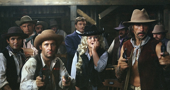 Чудесная лента о том, как кинематограф пришел в отдаленный уголок Америки и что из этого вышло Мистер Фёст, полный благих намерений, отправился в далекое поселение, везя с собой исключительно положительные комедии. Потому что мистер Фёст был полон исключительно положительных намерений - сменить грубость нравов на вежливость и заботливое отношение друг к другу. Что для зрителей было все равно что удар обухом топора Им грубые нравы местной жизни как раз нравились. Ну а владелец салуна на этом еще и немалые деньги поднимал: (Табаков в этой роли невероятно органичен, Вы не находите?) Фёст, вместо грандиозного успеха, ждало сокрушительное поражение - пока он уезжал за свадебными подарками, приехал мистер Секонд, который насчет отбора фильмов особо не думал, зато отлично чуял коммерческий успех картины. Так что единственным утешением Фёста в этом проекте стало появление возлюбленной по имени Диана: А вот друг "Джонни, заряжай!" остался дома: Теперь у Фёста новый друг: Говорит, что влюблен