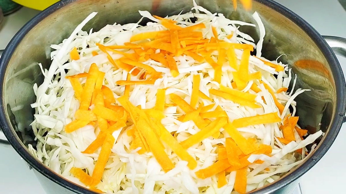 Привет, сегодня поделюсь рецептом квашеной капусты. Она получается хрустящая, белоснежная, вкусная и полезная. 📝Рецепт: Капуста 2 кг Морковь 150-200 г Соль 2 ст.л. с горкой Сахар 2 ст.л. с горкой Вода 2 л Капусту для этого рецепта выбираю поздних сортов, кочан должен быть большим белым и приплюснутым. Капусту шинкую тонкими полосками на тёрке или ножом. На 2 кг капусты беру одну морковь среднего размера. Морковь натираю на крупной тёрке, можно на корейской тёрке. Перемешиваю капусту с морковью и укладываю в подходящую емкость. Можно квасить капусту в стальной кастрюле, в эмалированной, в стеклянной. Каждый слой капусты хорошо утрамбовываю. Заливаю капусту подготовленным рассолом. Для рассола беру обычную холодную питьевую воду, развожу в ней соль и сахар. Если капуста сладкая, то количество сахара можно уменьшить или вообще его исключить. Сверху ставлю тарелку и гнёт, например банку, наполненную водой. Оставляю капусту кваситься на кухне, при комнатной температуре. На т