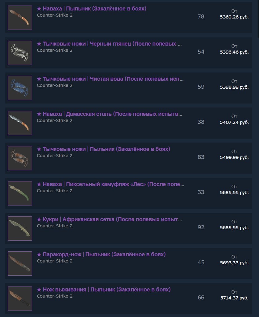 Цены на ножи в CS2 стремительно упали из-за снятия трейд-банов. Теперь ножи, которые раньше были дорогими, стали доступны. Например, нож-бабочка подешевел на 70%, керамбит — на 80%, штык-нож — на 75%, а коготь — на 69%. ────────── ⚡️Важные новости – без лишнего шума!⚡️ Подпишись на канал и получай только суть: оперативно, чётко, по делу! 👉 ИнфоСплетник | @infospletnik