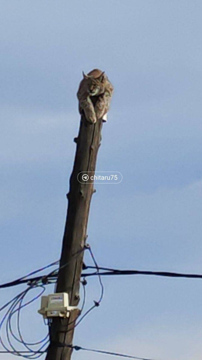 В ответ на пост Собаки загнали рысь на столб в Могойтуе. Очевидец рассказал @chita.ru, что на улице Декабристов собрался народ и больше 100 машин, чтобы спасти животное. В администрации поселка @chita.ru рассказали, что после спасения кошку отвезут в ветклинику, чтобы проверить на бешенство: Как она могла в поселок зайти? Лесное животное. Мы весьма удивлены. У нас из-за этого большой ажиотаж. Сейчас с рысью все хорошо, ее уже сняли. Видео: тг-канал Гэсэра Раднаева 📌📌📌📌📌 Новости Читы и Забайкалья
