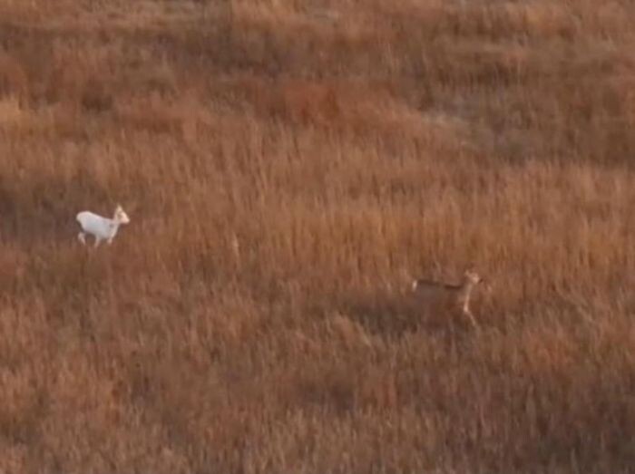 Инспектор охраны природы в Доволенском районе Новосибирской области запечатлел на камеру беспилотника очень редкое животное – белую косулю.
