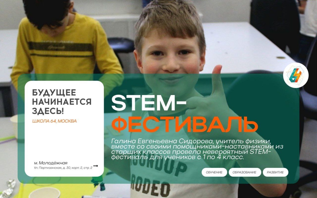 Галина Евгеньевна Сидорова, учитель физики, вместе со своими помощниками-наставниками из старших классов провела невероятный STEM-фестиваль для учеников с 1 по 4 класс.