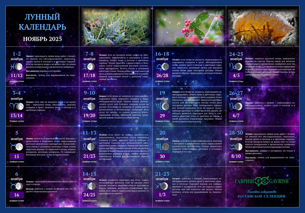 Лунный календарь садовода и огородника на ноябрь 2025 года