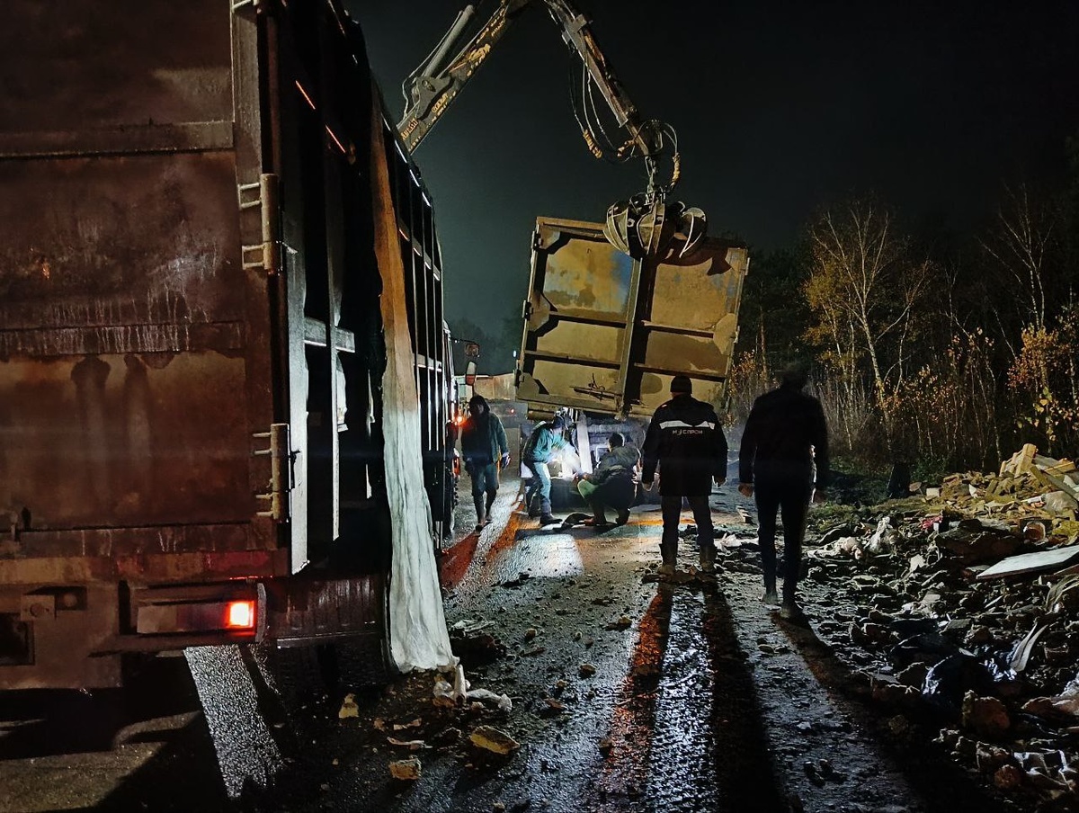 Два дня на обочине трассы М-7 валялся опрокинутый бункер, рядом с которым были разбросаны бытовые отходы. И только этой ночью (после того, как у нас вышел пост об этой ситуации) место было "зачищено". По словам эколога Дмитрия Левашова, бункер с отходами был опрокинут в результате аварии мусоровоза, принадлежащего компании "Муспром". Работы по подъему и транспортировке бункера, а также по очистке территории проводились под личным контролем Министра экологии региона Владимира Тужилина под «метелку».
