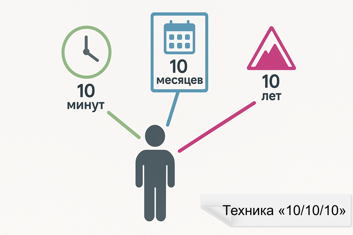 Бывало ли у вас такое, что вы часами обдумываете решение, прокручиваете в голове все возможные исходы, но так и не можете сделать окончательный выбор? Знакомо ли это чувство тяжести на душе, когда кажется, что любая опция может привести к ошибке? А потом, после мучительных раздумий, не покидает ли ощущение, что вы все равно поступили неверно? Эти знакомые многим состояния парализуют волю и крадут драгоценное время и энергию. Что если существует способ посмотреть на ситуацию с новой, более спокойной и ясной перспективы? Техника «10/10/10» – это простой фреймворк для принятия решений, который заставляет нас выйти за рамки сиюминутных эмоций и краткосрочных последствий. Его суть заключается в том, чтобы рассмотреть любую дилемму через три временных промежутка: как мы будем относиться к этому решению через 10 месяцев, 10 лет и, возможно, даже через 10 минут? Этот подход не дает универсального ответа, но он организует наши мысли и придает им четкую структуру, позволяя увидеть истинную значи