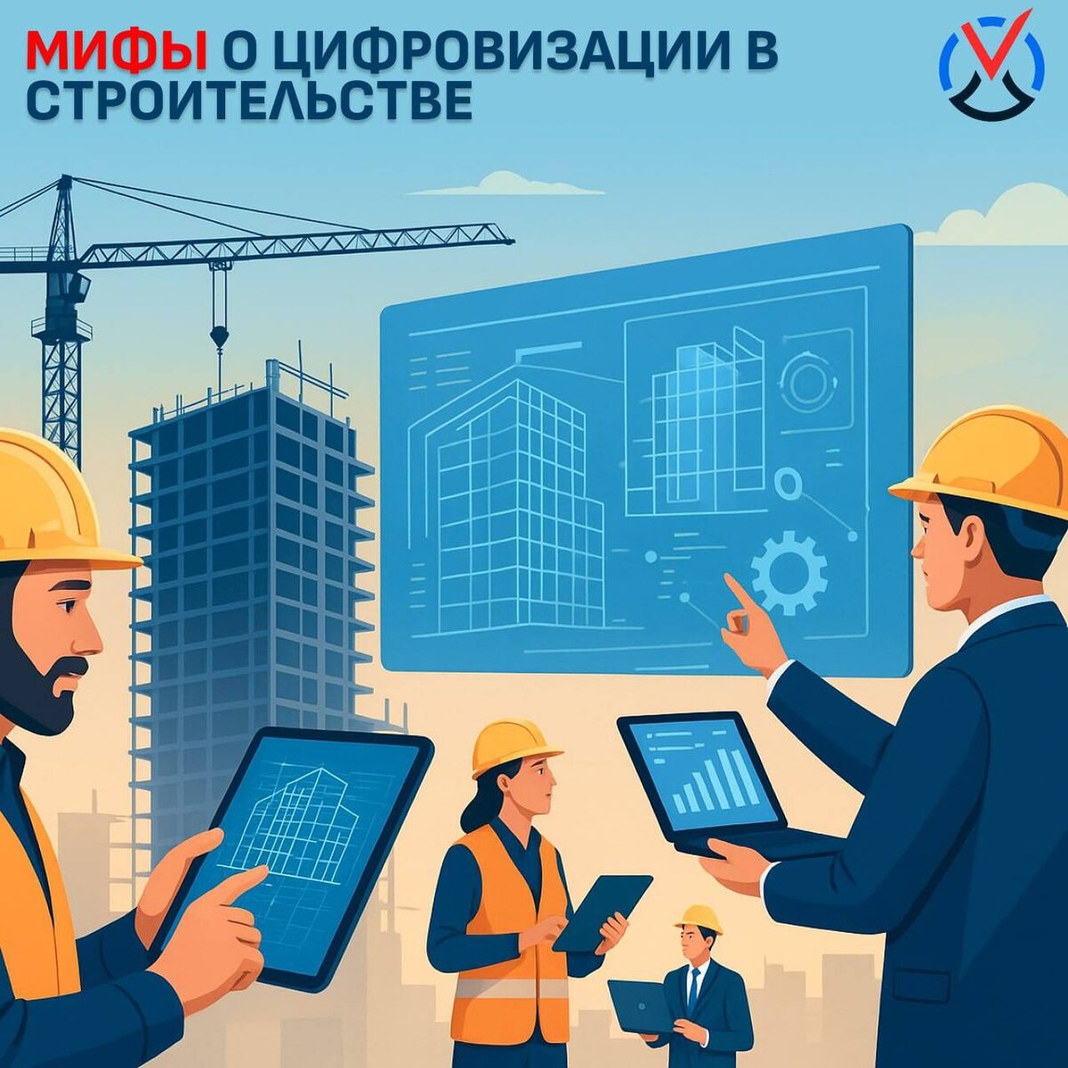 Цифровизация в строительстве: развеиваем популярные мифы🏗️💻 💰Миф 1. Это очень дорого и сложно реализуемо для малого бизнеса. 🔹Реальность: цифровизация для малого бизнеса сегодня — это не миллионные инвестиции. Российские облачные платформы предлагают экономически обоснованные решения — от электронного документооборота до систем управления ресурсами. Срок окупаемости таких проектов составляет 2-3 месяца благодаря оптимизации операционных процессов и минимизации ошибок. 🤖Миф 2. Роботы заменят прорабов и инженеров. 🔹Реальность: роботизация в строительстве помогает минимизировать рутину и опасный труд. Прораб может не «бегать с рулеткой», а в режиме реального времени на планшете видеть прогресс, отслеживать поставки и управлять задачами. Ценность опытного специалиста, который может принимать решения на основе цифровых данных, только выросла. 🖥️Миф 3. «BIM - это просто 3D-модель» 🔹Реальность: BIM (Information Modeling of Buildings) — это единая информационная среда. В модели «заш