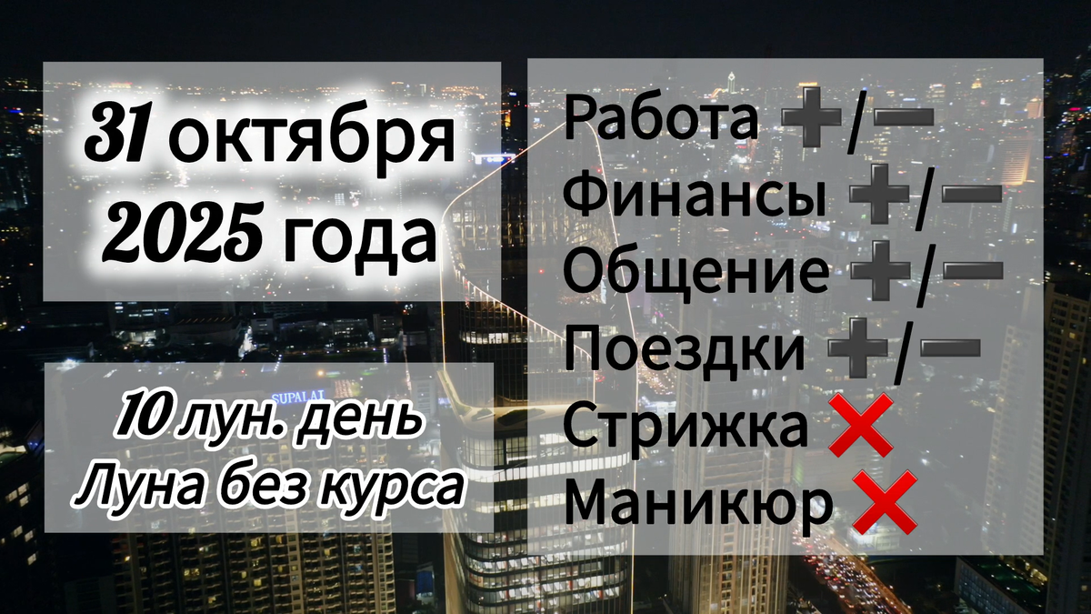 В первую половину дня будет Луна без курса. Не стоит намечать на этот период важные дела, встречи и принятие ответственных решений. Планы могут срываться по независящим от вас причинам. Не стоит начинать долгосрочные проекты. Лучше заниматься текущими делами и работать с информацией, не взваливая на себя ответственность и повышенную нагрузку. Не стоит делать крупные и спонтанные покупки. Противопоказаны ссоры, особенно с родственниками, так как этот день связан с родовой памятью человека и кровным родством.
