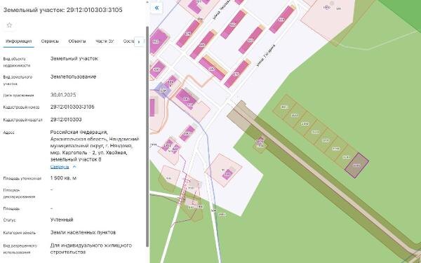 Название: Земельный участок из земель населенных пунктов, с кадастровым номером 29:12:010303:3105, расположенный: Российская Федерация