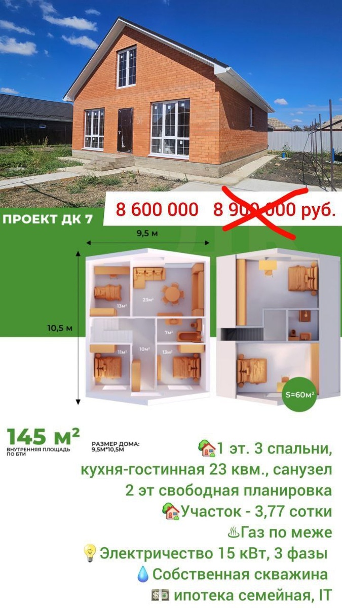 Готовый дом возле школы 🏡 полуторка с просторной кухней гостиной 23 квм, полноценными 3-мя комнатами + мансардныйэтаж 60 квм, общая площадь 145 квм ‼️