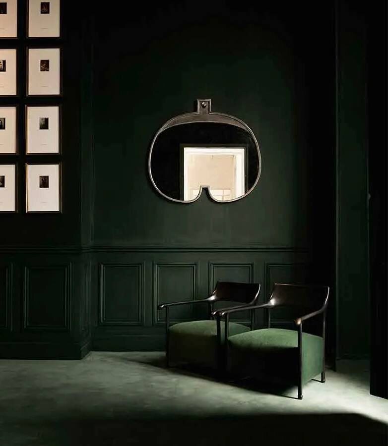 Впервые в этой коллекции Зана обратился к технике лакировки, сотрудничая с ателье Пьера Боннефиля. Так появились столы в глубоких оттенках тёмно-оливкового, каштанового и ореховом, - каждый из которых по-своему оживает в инте