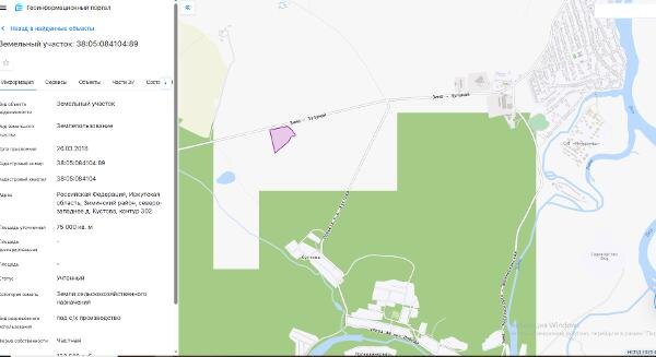 Название: Земельный участок из земель сельскохозяйственного назначения площадью 75000 кв.м, с кадастровым номером 38:05:084104:89