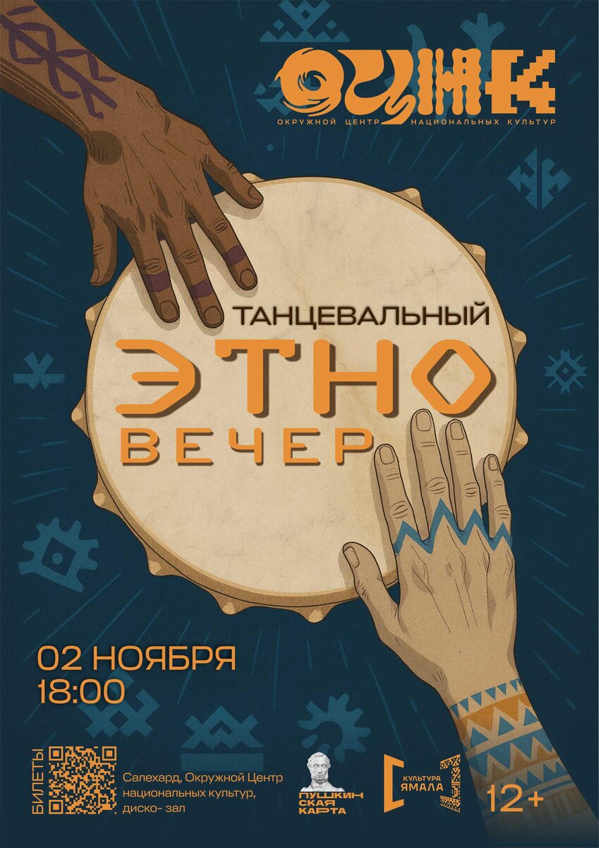 Танцевальный этновечер в ОЦНК! 💃🕺 В рамках фестиваля «Созвездие культур» 2 ноября в 18:00 пройдет «Танцевальный этновечер». Вас ждут: национальная музыка, которая заставит сердца биться в унисон; удивительные обычаи и танцы; зажигательные этнохиты, под которые невозможно устоять на месте! Это будет вечер, полный энергии, радости и неповторимой атмосферы 🎶 Погрузитесь в мир народных традиций и национальных ритмов! 🌍 🎟️ Билеты доступны по ссылке: https://clck.ru/3Q46h9. * Все билеты можно приобрести по Пушкинской карте или через сервис «Морошка» со скидкой 20% 💳