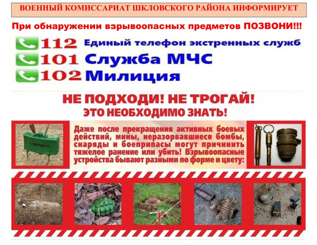 ⚡️Шкловский военный комиссариат информирует, что делать в случае обнаружения взрывоопасных предметов