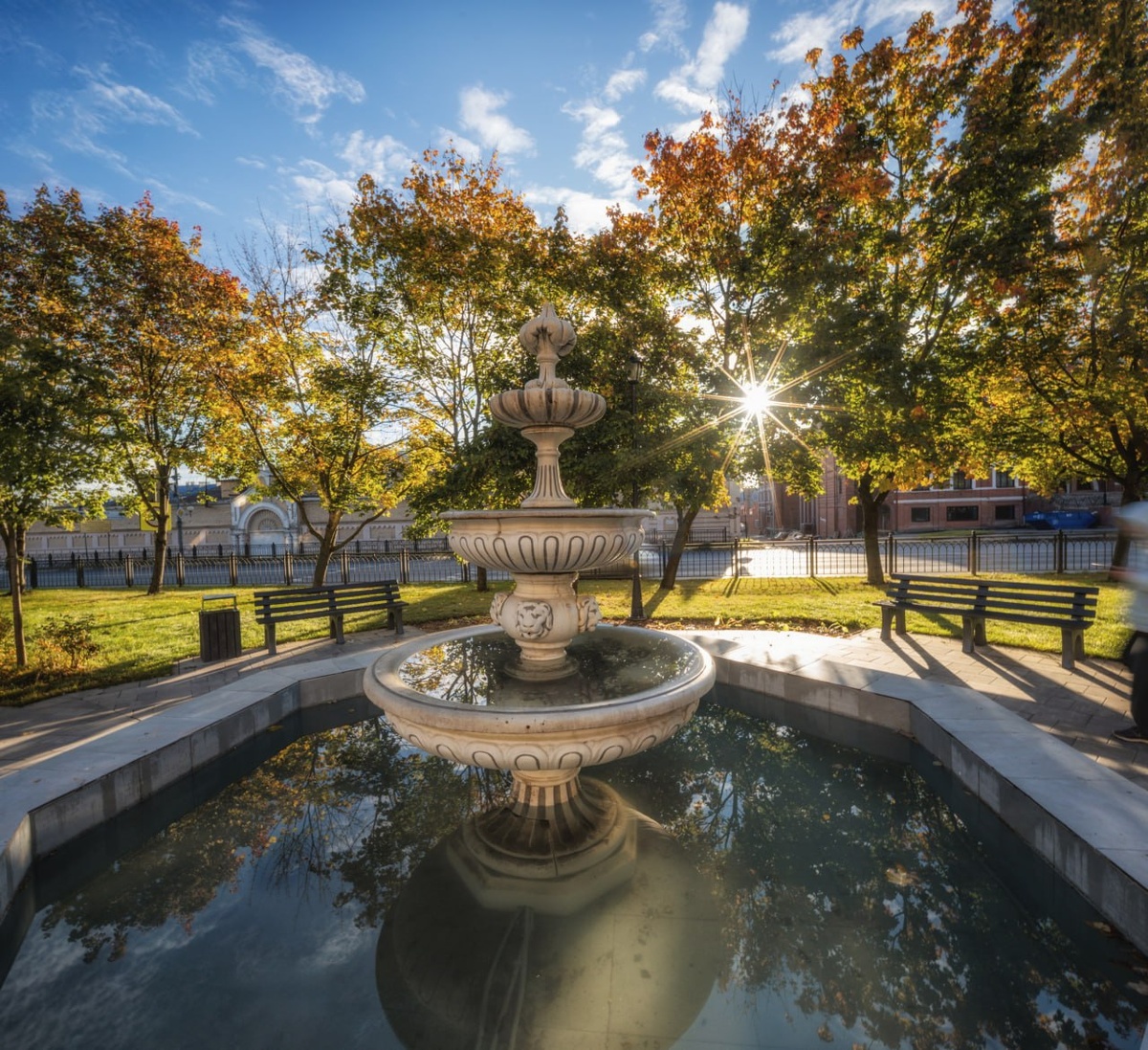 Обычный городской фонтанчик и его осеннее настроение