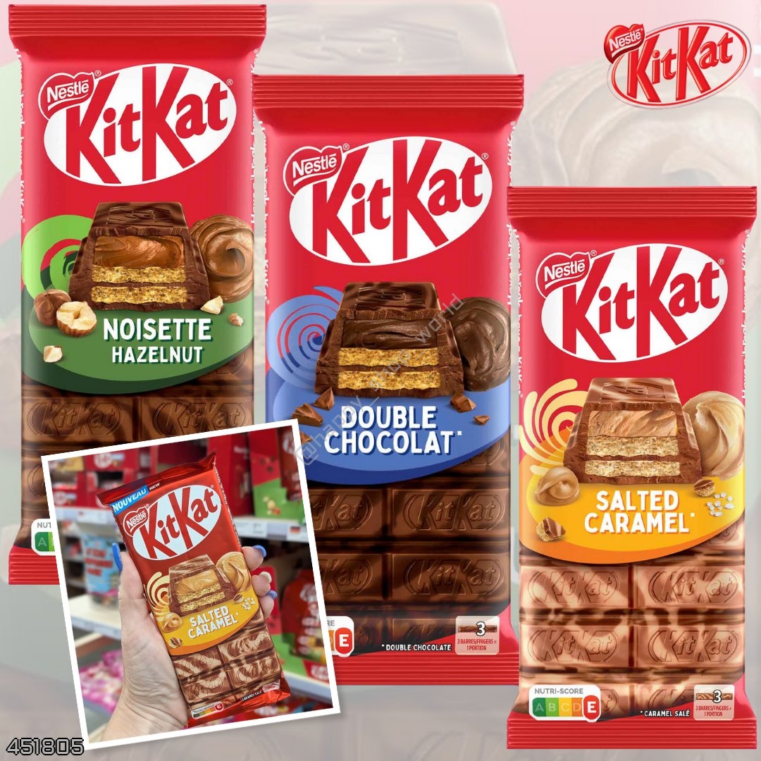 Kitkat 🇩🇪 Молочный шоколад KitKat слева 400₽ + доставка 99 г Сочетание хрустящей вафли и изысканной ореховой кремовой начинки, заключенной в нежнейшую молочную шоколадную оболочку. Молочный шоколад KitKat в центре 400₽ + доставка 99 г Хрустящая вафля в молочном и темном шоколаде с начинкой, содержащей обезжиренное какао. Молочный шоколад KitKat справа 400₽ + доставка 99 г Хрустящая вафля в молочном шоколаде и белой глазури с карамельным вкусом и начинкой со вкусом соленой карамели. ID: 451805 РАЗМЕСТИТЬ ЗАКАЗ ✏️Для заказа пишем 👉🏻@ksenya_charme
