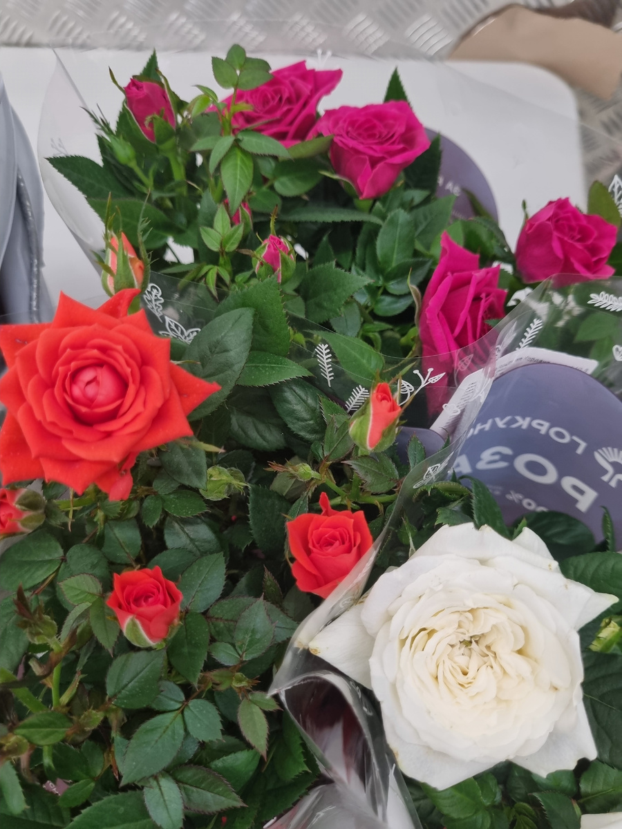 Вчера я очень неожиданно поехала вечером в Краснодар. В планах такого вообще не было, но раз приехала, то надо зайти в Лемана Про. Как раз нужны новые тары под мяту. А там, в садовом отделе - розы! Много-много! И муж сказал волшебное слово. "Выбирай"! Ну, как можно отказать мужу, когда он такое предлагает! Стала смотреть, какие мне больше нравятся и каких цветов у меня еще нет. Выбрала белые. Чисто-белых роз, как и сиреневых, у меня все никак не получается завести. То срозова, то сжелта. А тут - идеально белые! Вторую я выбрала ярко-розовую (цвет маджента). Не знаю почему, но очень мне захотелось именно такого цвета. А третью мы долго решали, какую нам надо. Оранжевая есть, желтая есть. Розовые я не люблю (и тоже есть), красная есть (и тоже не люблю), а вот коралловой - нет! Ее и взяли. Сорта, увы, остались неизвестными. На упаковке написано "Роза кордана. Ассорти". Поэтому снова не знаю, что за красотки у меня поселились. Сегодня буду высаживать красавиц в грунт, чтобы росли и ра