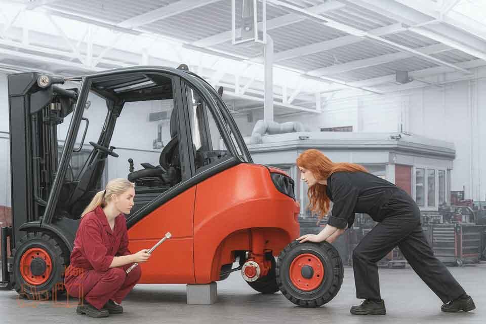 - Погрузчик уводит в сторону при торможении – неравномерный износ или сбитая регулировка тормозов.