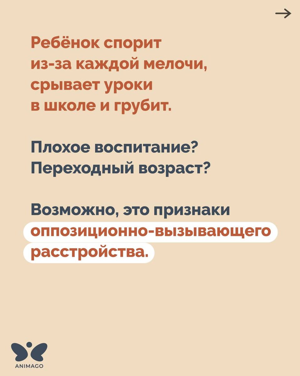 Поведение ребёнка может казаться вызовом: он спорит, злится, будто снова и снова проверяет границы. Бывает, что за этим — трудность справляться с чувствами, и ему самому непросто. На консультации в «Анимаго» администратор бережно поможет разобраться в ситуации, подобрать подходящего психолога и рассказать, как проходят занятия. Это первый шаг к тому, чтобы почувствовать: вы и ваш ребёнок снова в одной команде. Подробнее — по этой ссылке.