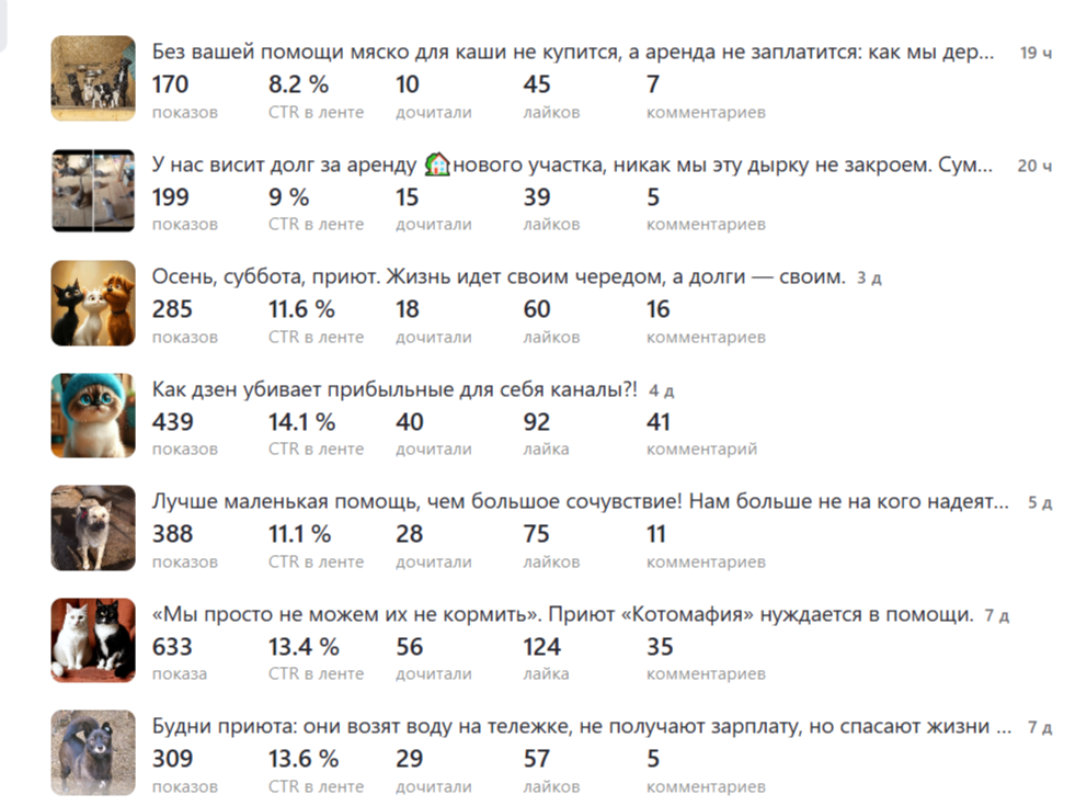 Это связано прежде всего, с тем, что Дзен нам практически не даёт показов статей, следовательно и просмотры устремились к нулю и вслед за этим помощь хвостикам приюта приближается к нулю!