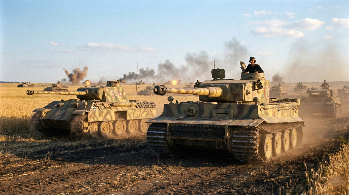 На Курской дуге Гитлер задумал операцию «Цитадель», рассчитывая вернуть репутацию «непобедимых» и инициативу лета 1943 года. Немцы стянули до 50 дивизий, включая 17 танковых, и свыше двух тысяч самолётов, планируя клещами из районов Белгорода и южнее Орла разгромить наши войска. Наступление откладывали до 5 июля из-за ожидания «Тигров» и «Пантер», которые подавали как «секретное оружие».