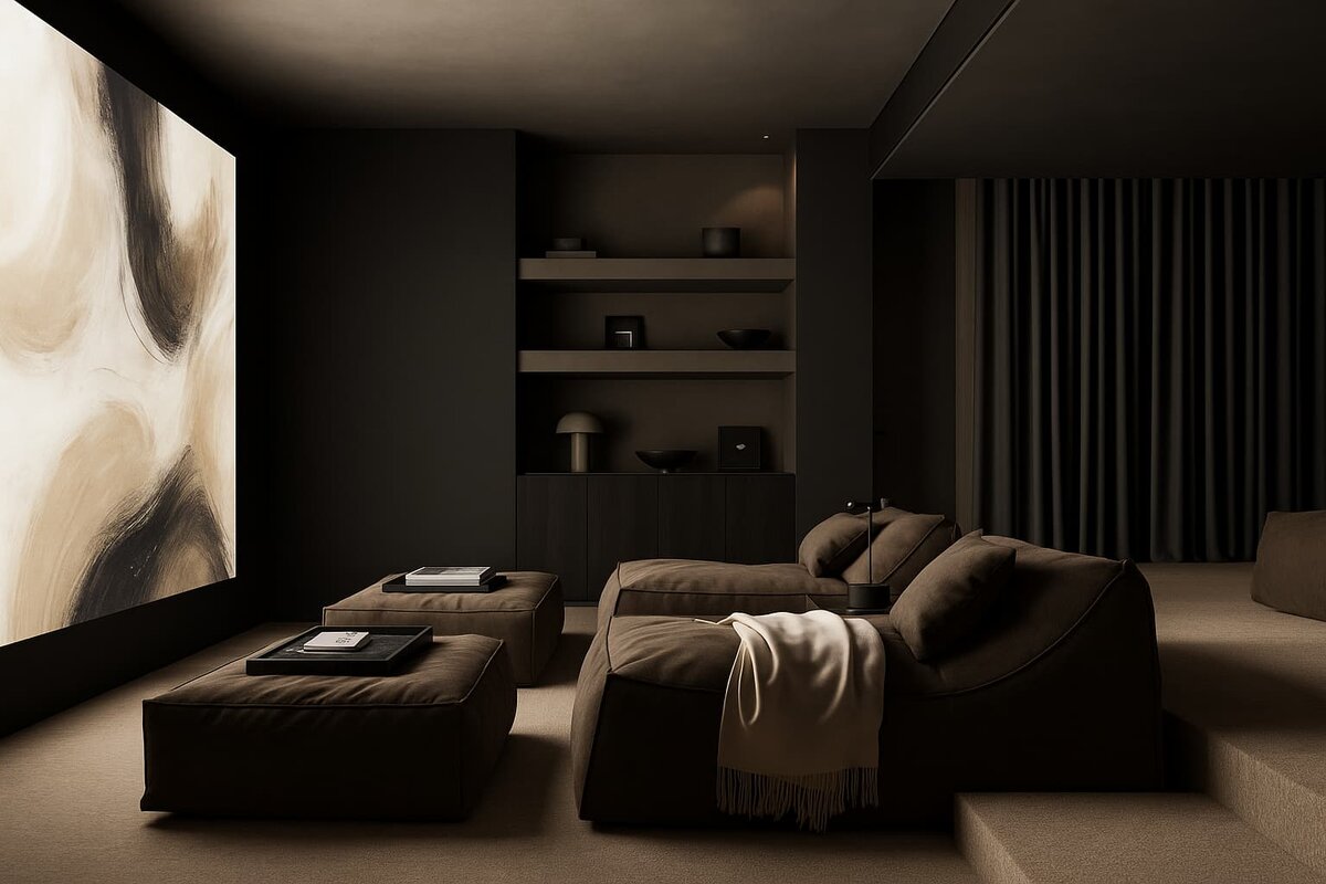 Рекомендации производителей: Главное правило — смотреть кино должно быть комфортно и естественно. Белые стены и светлый скандинавский интерьер — враг качественного изображения. Свет, отражаясь от стен и потолка, попадает обратно на экран и делает картинку блеклой. Контраст падает, «чёрный» превращается в серый, и да