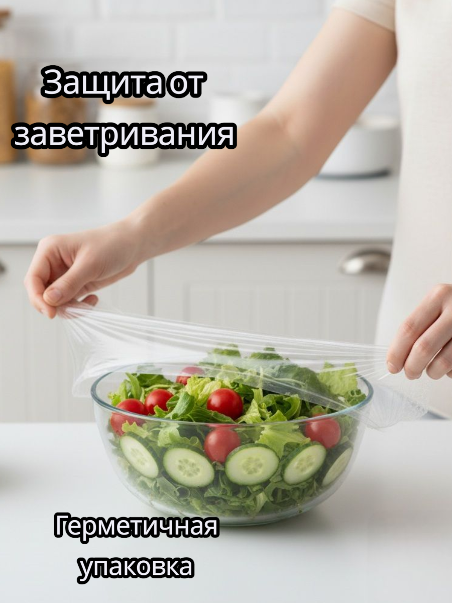 Знакомая ситуация: остался вкусный салат, но как его сохранить? Накрыть тарелку другой тарелкой? Использовать опасную пищевую пленку, которая вечно липнет ко всему? Пора забыть о неудобствах! Мы расскажем вам о настоящей революции в организации кухонного пространства — универсальных пакетах-шапочках на резинке. Это не просто хозяйственные пакеты, а многофункциональный помощник, который изменит ваше представление о хранении продуктов. Что это за чудо-пакеты? Это набор из 100 прозрачных пакетов из прочного и эластичного материала. Главная особенность — плотная резинка, которая обеспечивает герметичность и надежно фиксирует пакет на любой посуде. Страна производства — Китай, что гарантирует оптимальное соотношение цены и высокого качества. Ключевые характеристики: 5 причин, почему эти пакеты должны быть на каждой кухне 1. Идеальная крышка для любой посуды