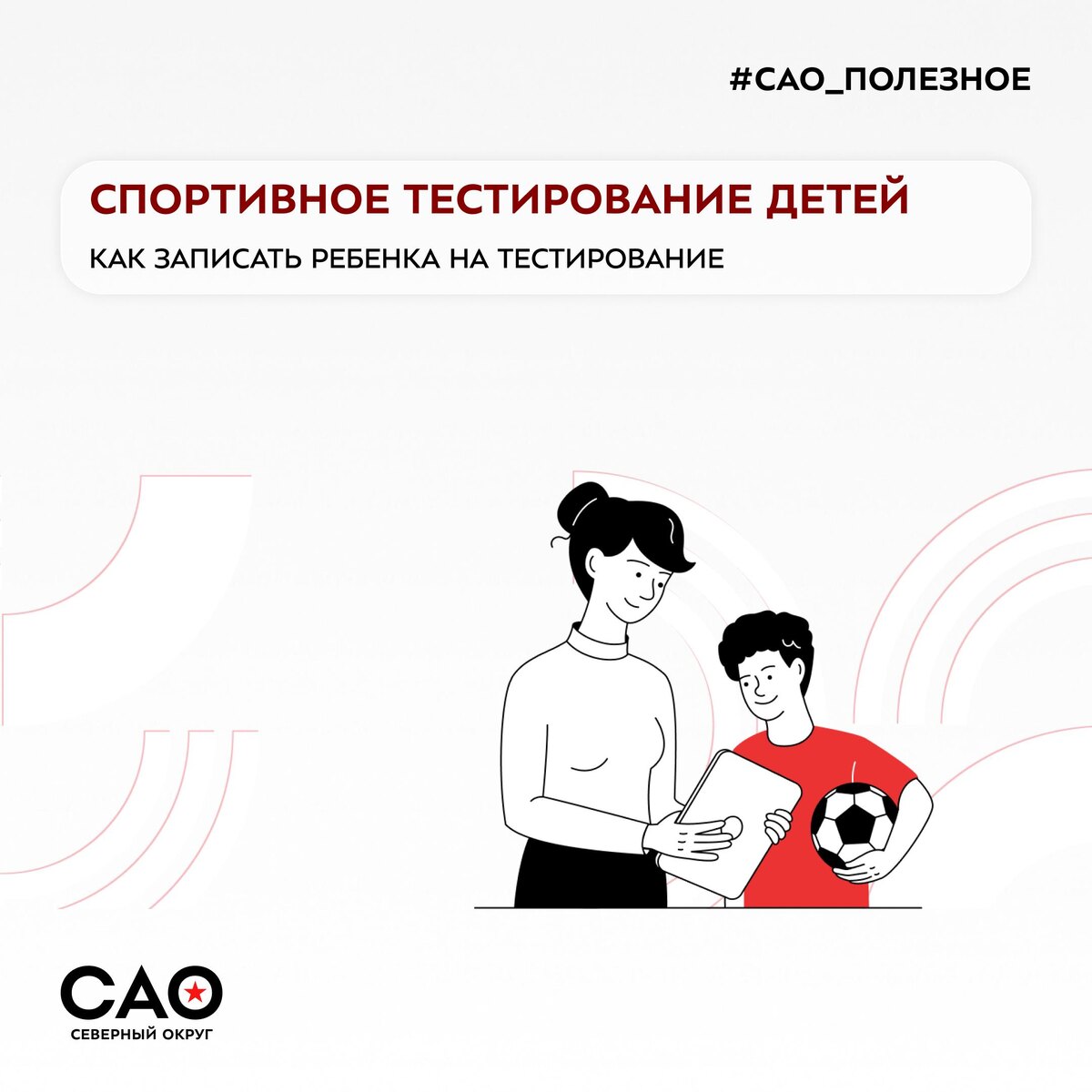 🏃♂️ Запись на тестирование по выбору спорта для детей В Москве запущена программа тестирования, которая помогает определить, к какому виду спорта ребёнок предрасположен. Пройти её могут дети от 6 до 12 лет независимо от уровня подготовки. Что включает тестирование 👇 ➡️Антропометрия — состав тела, телосложение и уровень физического развития ➡️Психологическая часть — оценка памяти, внимания, скорости реакции и темперамента ➡️Спортивная часть — проверка координации, реакции на нагрузку, скоростно-силовых качеств и вестибулярной устойчивости ➡️Результаты — сравнение показателей с возрастной нормой и персональные рекомендации по видам спорта 🕞Тестирование занимает не более 45 минут. Что взять с собой: 🔵Паспорт родителя или законного представителя 🔵Медицинскую справку (форма №095/у) 🔵Спортивную форму и кроссовки для ребёнка 🐭 Подробнее читайте на сайте. 🖥 Подписывайся – Префектура САО #САО_полезное