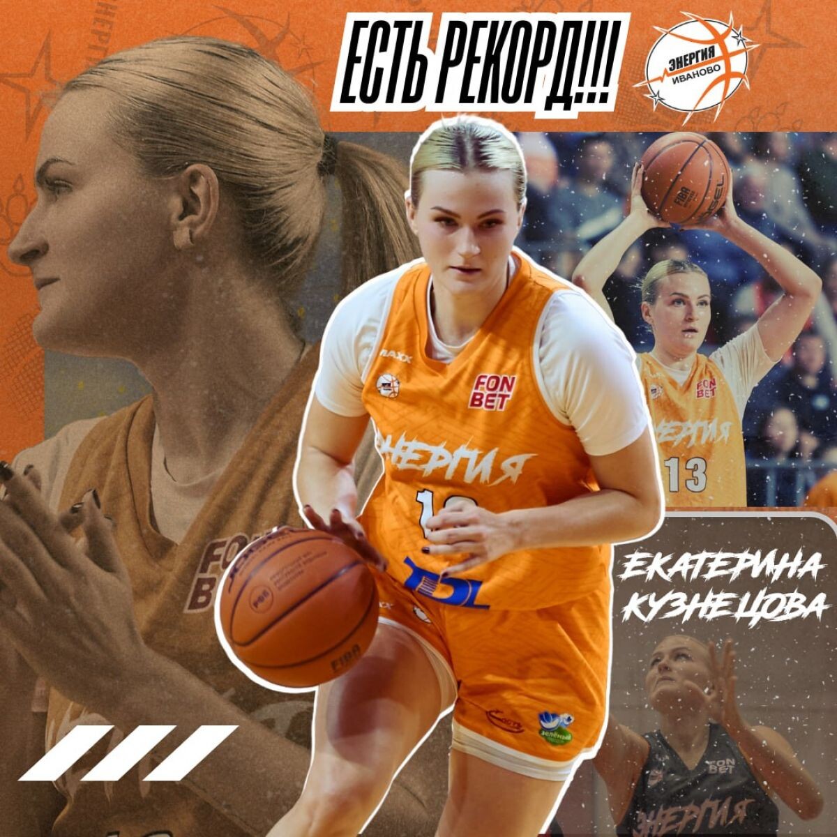 Вчера в Сыктывкаре прошёл матч Кубка России по баскетболу между местной «Никой-Лузалес» и ивановской «Энергией». В ходе матча капитан команды Екатерина Кузнецова побила рекорд клуба и стала самым результативным игроком за его историю. До этого рекорд принадлежал Ксении Хохловой - 3288 очков. Екатерина Кузнецова прибавила к нему ещё два очка. Напомним, что баскетболистка играет в составе ивановской «Энергии» с 2016 года. Кроме того, Кузнецова успешно выступает за команду Ивановской области в турнирах по баскетболу 3x3; является победительницей первенства России (u19) и бронзовым призёром Кубка России. 0+