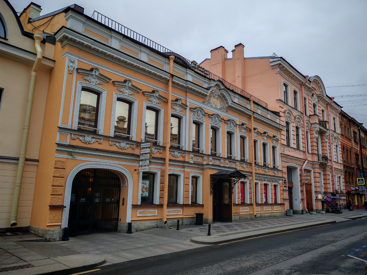Здравствуйте, дорогие подписчики и гости моего канала. У меня сегодня единственный полноценный выходной на каникулах. И что я делаю? Правильно! Иду на экскурсию. Мой проект по изучению доходных домов начался. "Большая экскурсия по парадным и знаменитым дворам". И это была типичная бродилка. Нас просто вели во двор или парадную и чуть-чуть о ней рассказывали. Мне кроме этого хотелось услышать об архитекторе или владельце, о сословном распределении по этажам, об устройстве быта. Ничего этого, к сожалению, не было. Ну что есть, то есть. Ходили мы неподалёку от Владимирского собора. И первый наш адрес - Кузнечный переулок, д. 6. Это дом розового цвета, самый дальний ⬇️ Парадная в нём открыта, там находятся коммерческие организации, зайти может любой. Вообще, все 3 дома, видимых на фотографии (правда, от первого дома видна только водосточная труба), принадлежали одному человеку - Василию Семёновичу Каншину, первому миллионеру Санкт-Петербурга. В первом доме жил он сам с женой (при советс