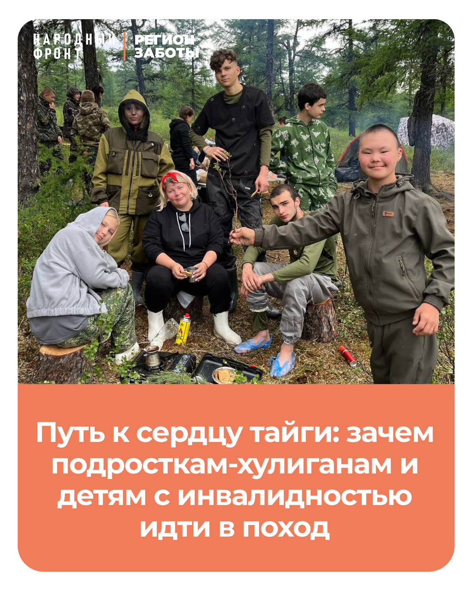 🪵Вместе они организовали поход по тайге, где 23 подростка пять дней жили в 50 километрах от ближайшего населённого пункта: сами кололи дрова, готовили на костре, переходили реку и учились помогать и заботиться друг о друге. Дети, которым обычно нужна поддержка, сами стали поддержкой для других. Хулиганы — учились терпению и командной работе. Дети с инвалидностью — почувствовали себя сильными и нужными.