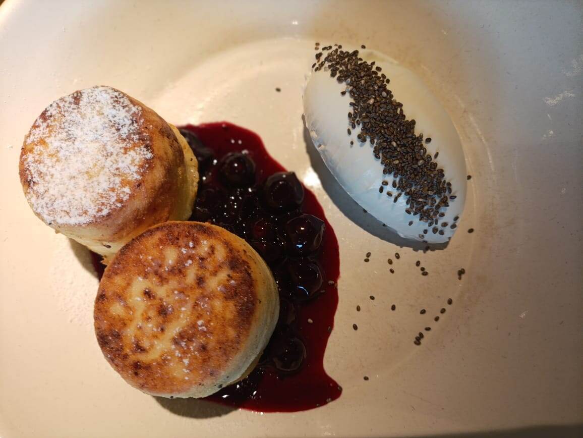 Сытные, симпатичные, лежат на подушке из смородины, которую не пожалели. Мягкие с хрустящей корочкой, корочка тонкая, мякоть нежная, сильно творожные, если можно так сказать, жареный творог, подумала я и сравнила с сырниками из Горыныча, и не напрасно, потому что шеф-повар ресторана работал и в Горыныче тоже. Ресторан She — совместный проект Зарькова и Собчак, относящийся к группе компаний White Rabbit Family.