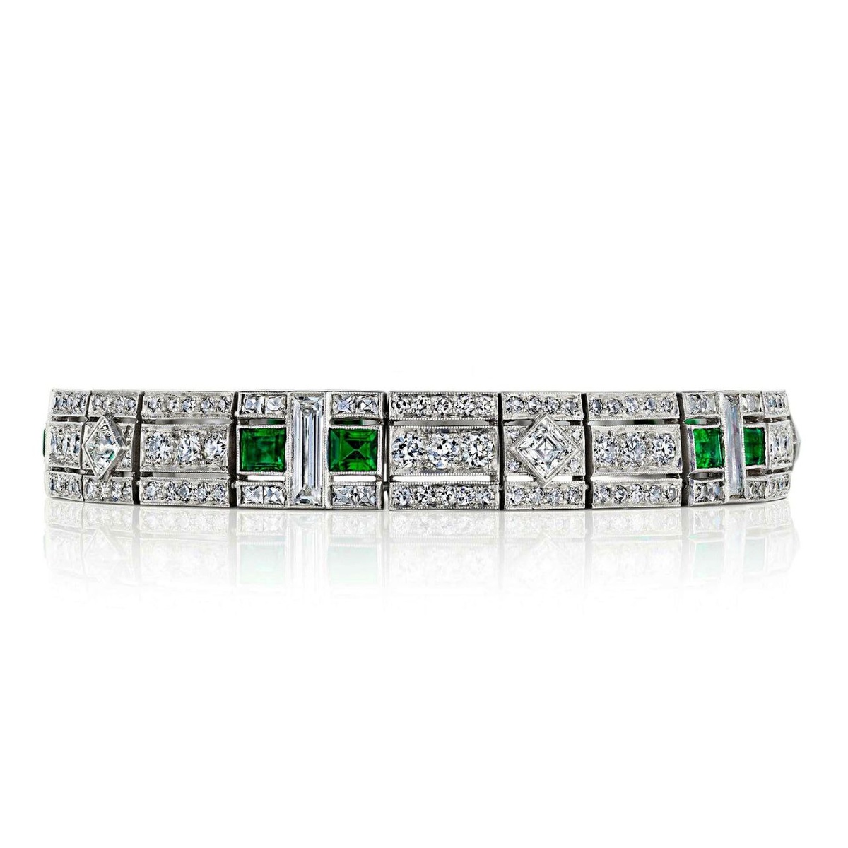 ⚘️Тиффани и ар-деко. В то время как Л.К. Тиффани создавал множество высокохудожественных произведений из стекла, в том числе и знаменитые лампы, основное направление семейной фирмы также активно развивалось: Tiffany & Co продолжала выпускать роскошные украшения. Особенно исключительными были ювелирные шедевры знаменитой фирмы, созданные в годы блистательного ар-деко, как например, этот изысканный браслет 1920-х гг., покрытый россыпью бриллиантов и изумрудов. Строгая геометрия - одна из особенностей стиля ар деко - лишь подчеркивает роскошь изделия и высочайшее качество исполнения. В эпоху "последнего большого стиля" фирмой Тиффани было создано множество утонченных ювелирных шедевров. Так, в 1925 году журнал The Queen отметил, что «июльские пароходы начинают выходить из Нью-Йорка с таким количеством драгоценностей, что в это не поверил бы никто, кроме Аладдина».