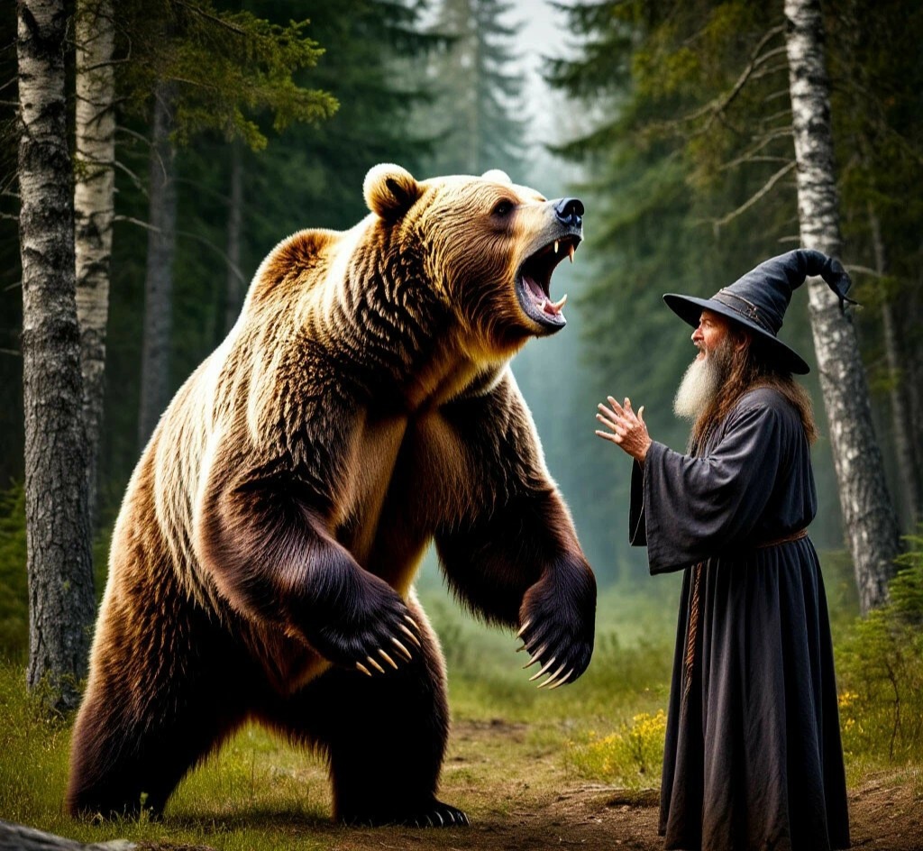В лесу стояло холодное осеннее утро. В избушку волшебника Николая Петухова зашел охотник. Николай давно поджидал его и метнулся навстречу. Взволнованным голосом он торопливо спросил: - Ну что согласен?! Охотник усмехнулся и спокойно ответил: - Согласен. Деньги приготовил? - Да, вот. - Хорошо. Уговор помнишь? Заклинание должно само кончиться через десять часов. - Да, да, конечно. А ты за это время приводишь нужного мне медведя сюда, вот шапка с его запахом. Давай начинать. Они вышли на поляну перед избой и Николай произнес оборотное заклинание. Охотник превратился в лису, быстро пробежал через поляну и скрылся в кустах. Николай вернулся в избу и сел за стол. Он стал ждать, нервно помешивая ложечкой чай в стакане и поглядывая в окно. Превращение людей в животных и обратно было волшебской специализацией Николая со времен колдовского училища. Там у него постоянно вместо предметов выходили какие-нибудь звери: то слон, то коза. Диплом волшебника в итоге он так и не получил, но стал за ден